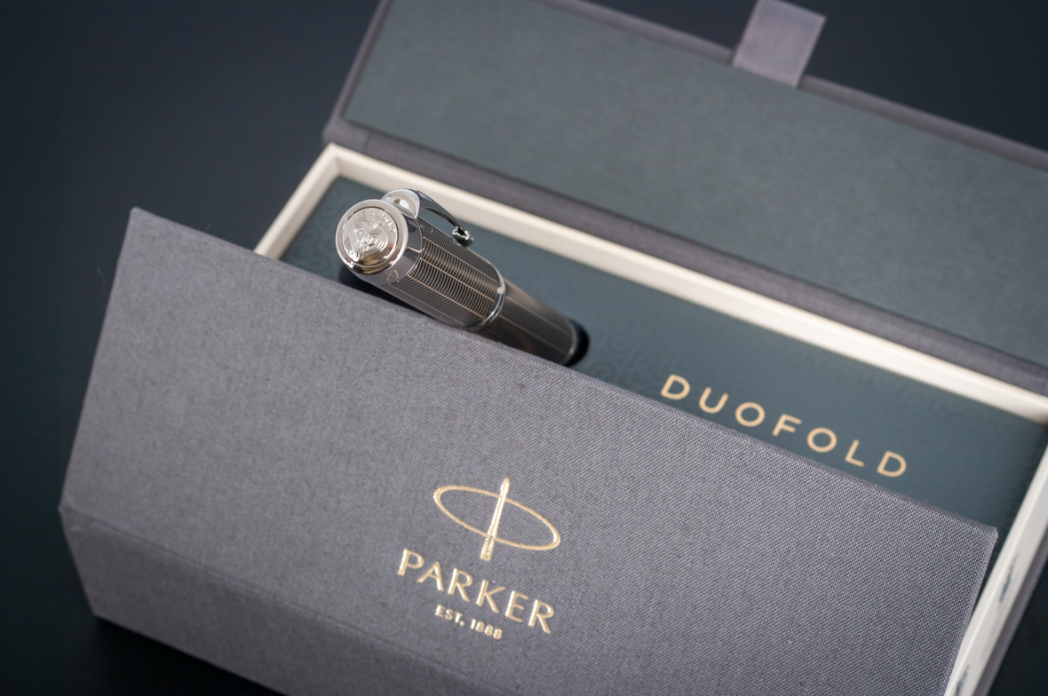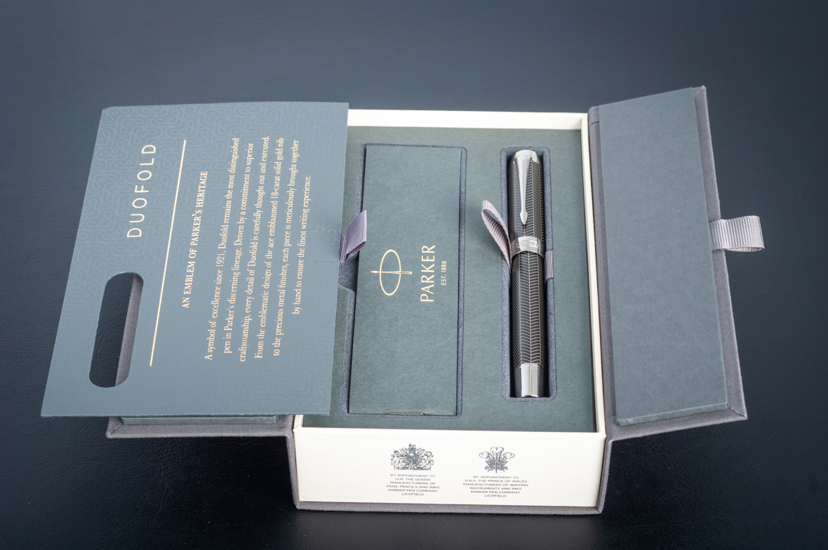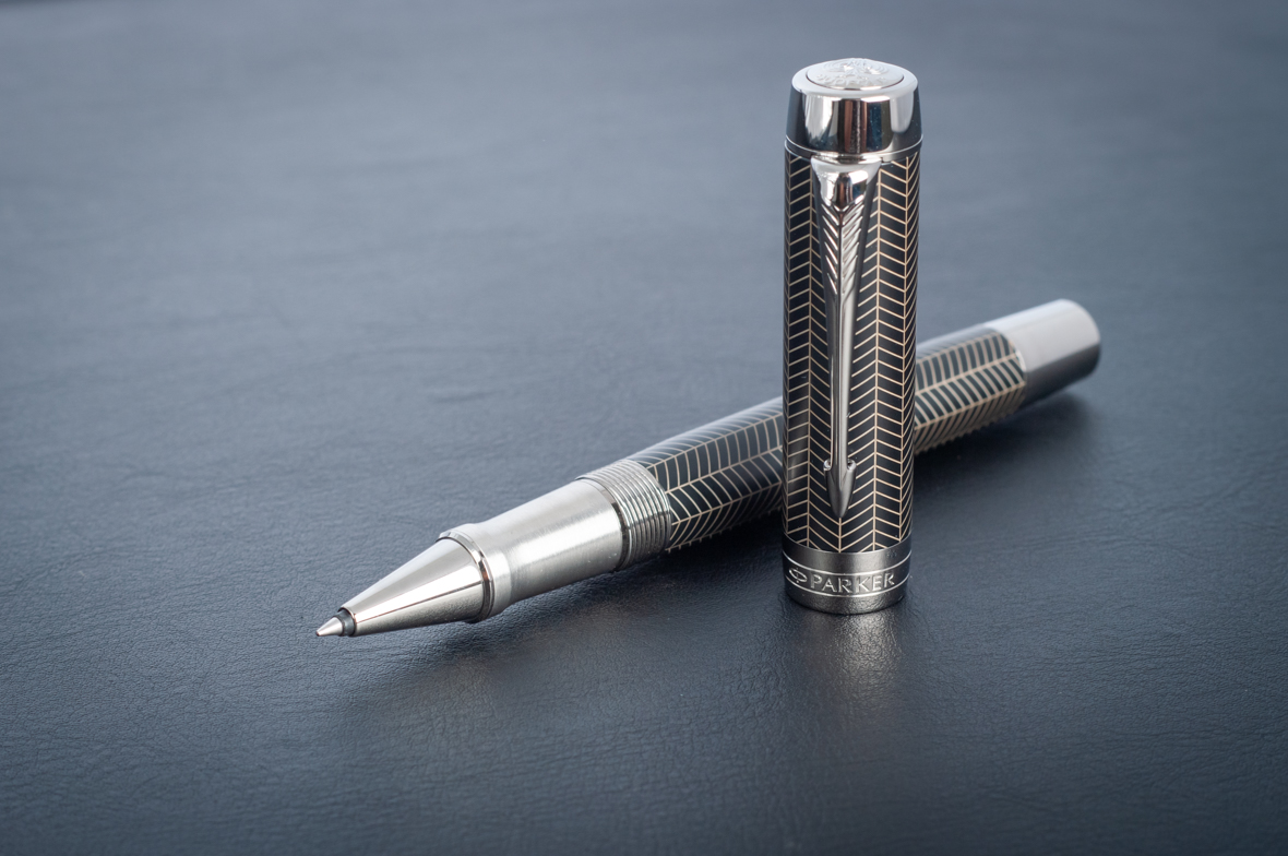 Ручка роллер Parker Duofold Prestige Centennial Black Chevron CT от официального дилера Parker в Сергиевом Посаде. Вы можете дополнительно заказать гравировку, которая подчеркнет Вашу оригинальность и придаст памятность статусному подарку. Все ручки Паркер поставляются в фирменном футляре.